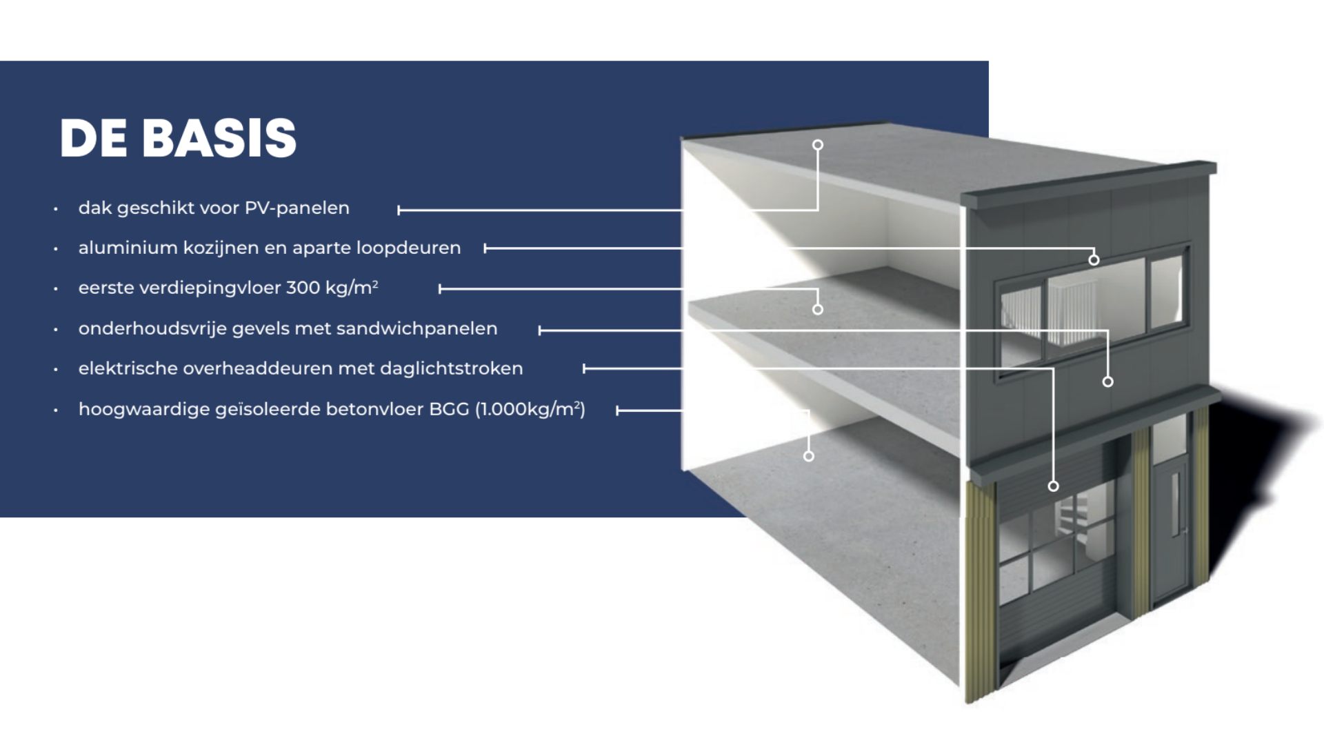 De nieuwe bedrijfsruimten combineren een moderne, robuuste uitstraling met een praktische en efficiënte indeling, waardoor ze zeer geschikt zijn voor diverse doeleinden. Denk hierbij aan opslag, lichte productie of kantoorruimte. Dankzij de flexibele opzet kunnen de units multifunctioneel worden ingezet, geheel afgestemd op de wensen van de gebruiker.